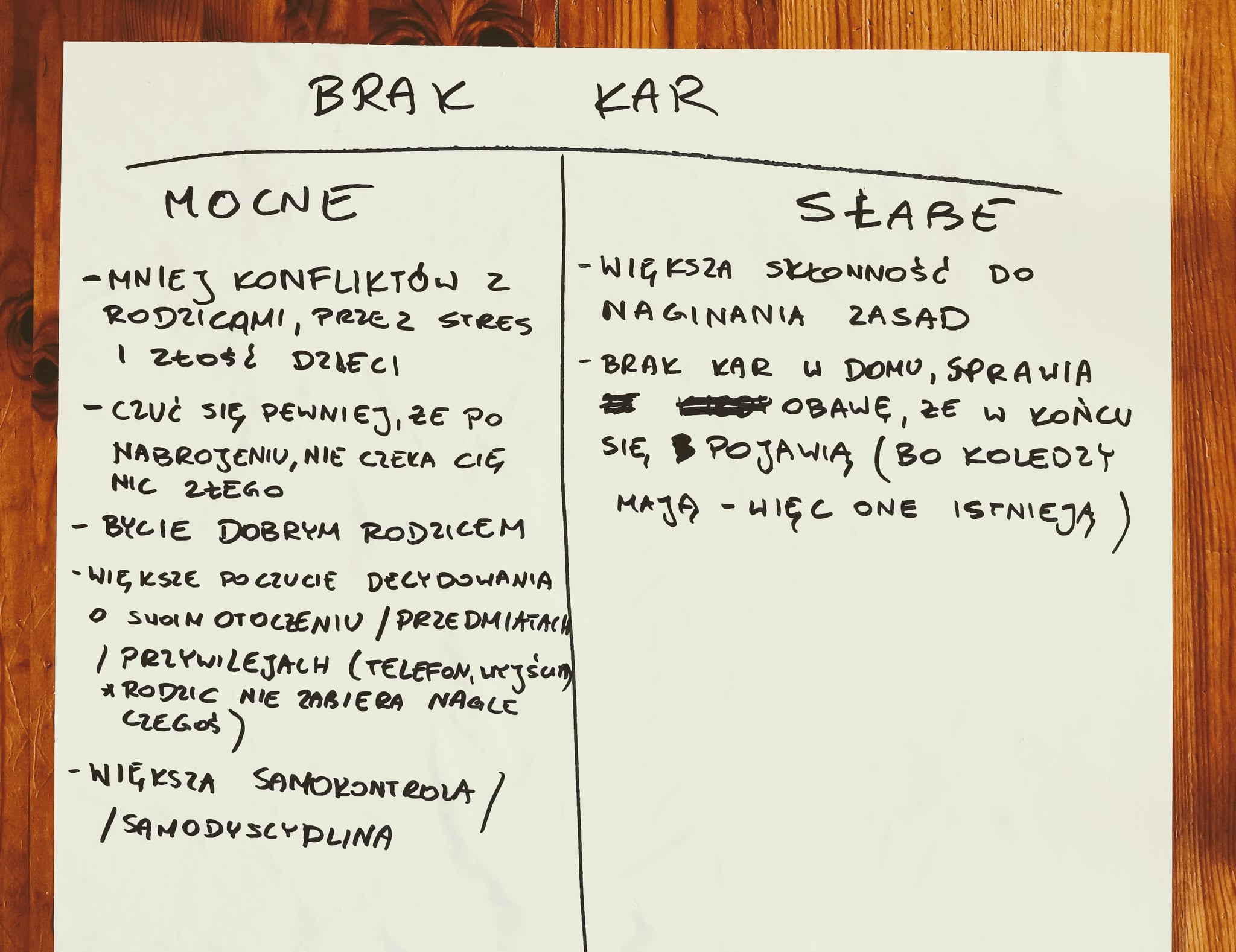 Zapytałem synów, jakie są mocne i słabe strony braku kar w domu. Każdy kto został ukarany mandatem wie, że na jakiś czas to może zadziałać ( pewnie do kolejnego mandatu